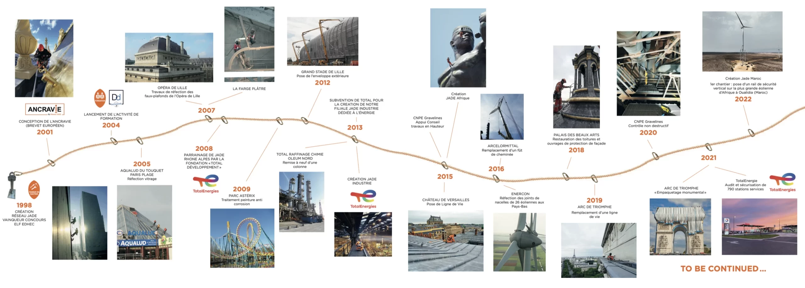 En 2022, Réseau-Jade poursuit son développement à l’international en implantant Réseau-Jade-Maroc à Casablanca pour répondre aux besoins des industriels en termes de travaux en hauteur et de formations dédiées à la culture sécurité des travaux en hauteur en éolien off et on-shore. appellent De nombreux acteurs nous font déjà confiance.
