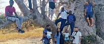 Photo d’équipe lors d’un safari, sous un arbre à Palabre au Sénégal.